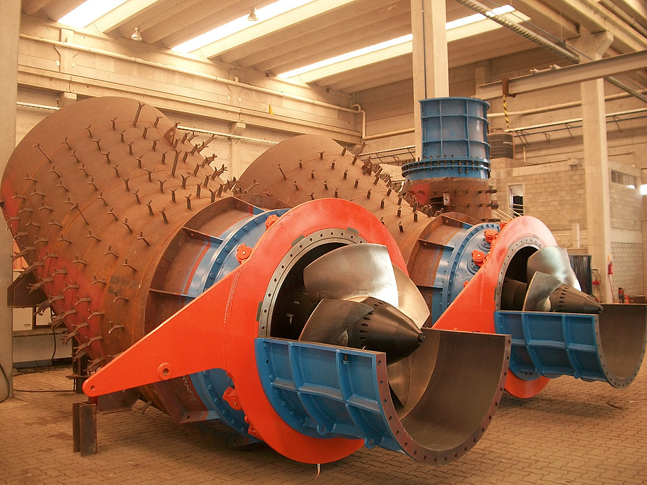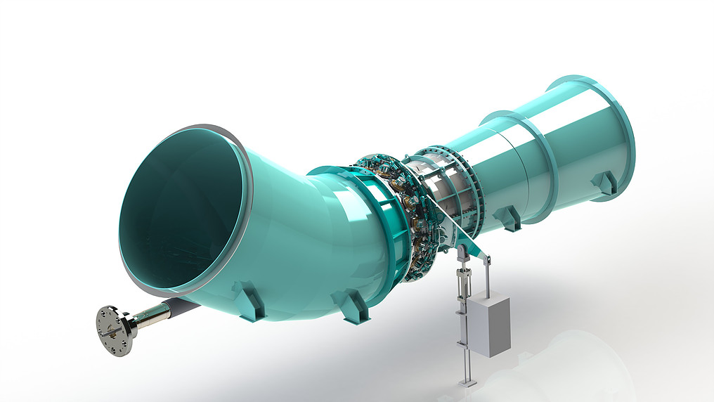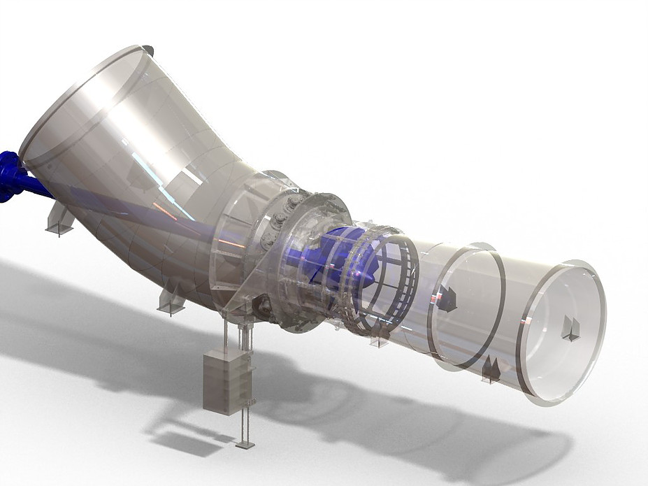 Produzimos turbinas Kaplan de eixo vertical e horizontal, sendo as horizontais nas configurações Tubular S de Montante e Tubular S de Jusante. As turbinas têm dupla regulação com sua curva de conjugação otimizada durante o comissionamento. As potências vão desde 500 kW até 10.000 kW.